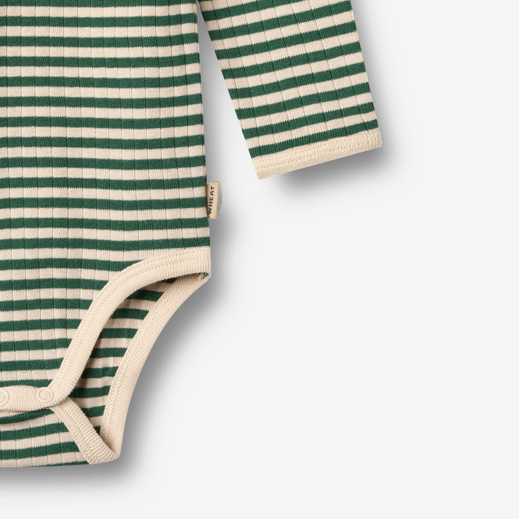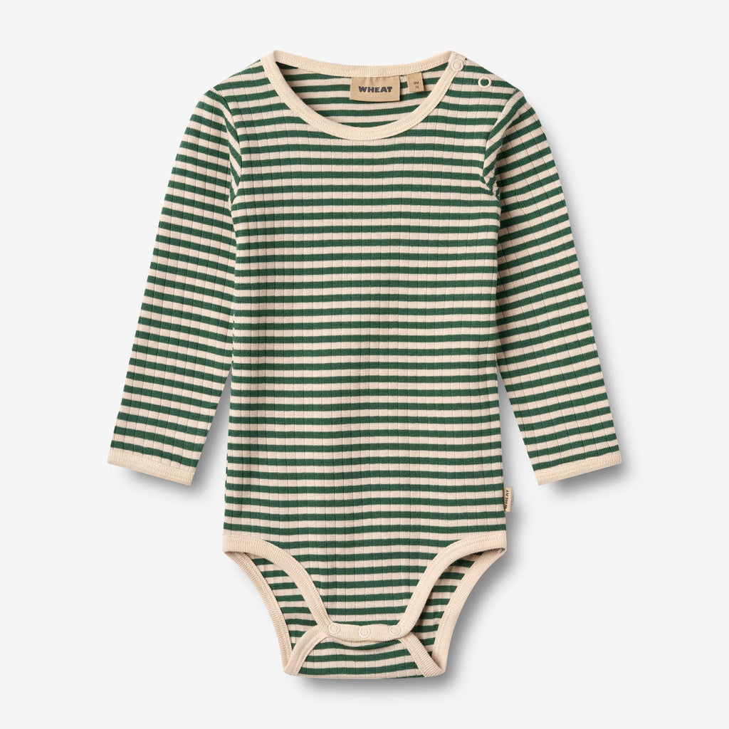 Wheat's body er unisex og et viktig plagg i babyens garderobe, da det kan brukes alene eller som et ekstra lag under hverdagsklærne. Bodyene har enten trykknapper på skuldrene eller knapper i halsen for økt komfort når du kler på babyen. Bodyen har også trykknapper i bunnen, noe som gjør det enklere for deg å komme til babyens bleie.