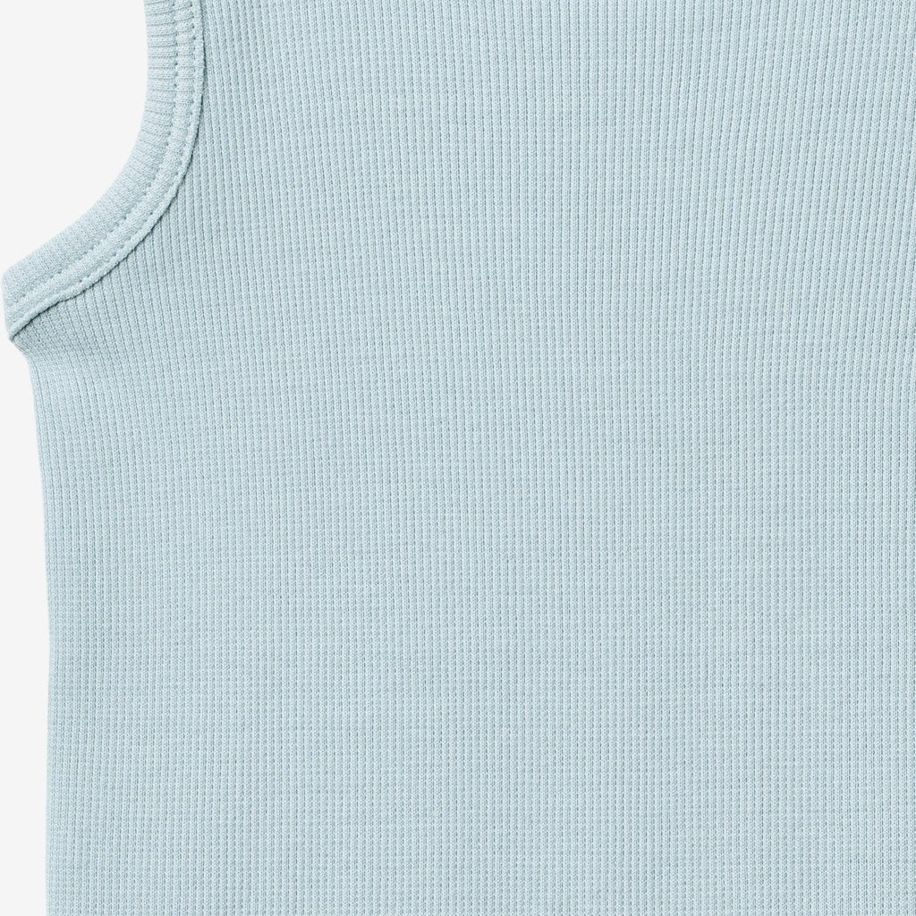 Ermeløs undertøysbody i myk og pustende økologisk bomull er et must-have i babyens garderobe. - Ermeløs- Trykknapper i skrittet- Ribbestrikket strukturDesignet for komfort og enkelhet, har den praktiske trykknapper for raske bleieskifter og en tettsittende passform som fungerer perfekt alene eller som et lag.