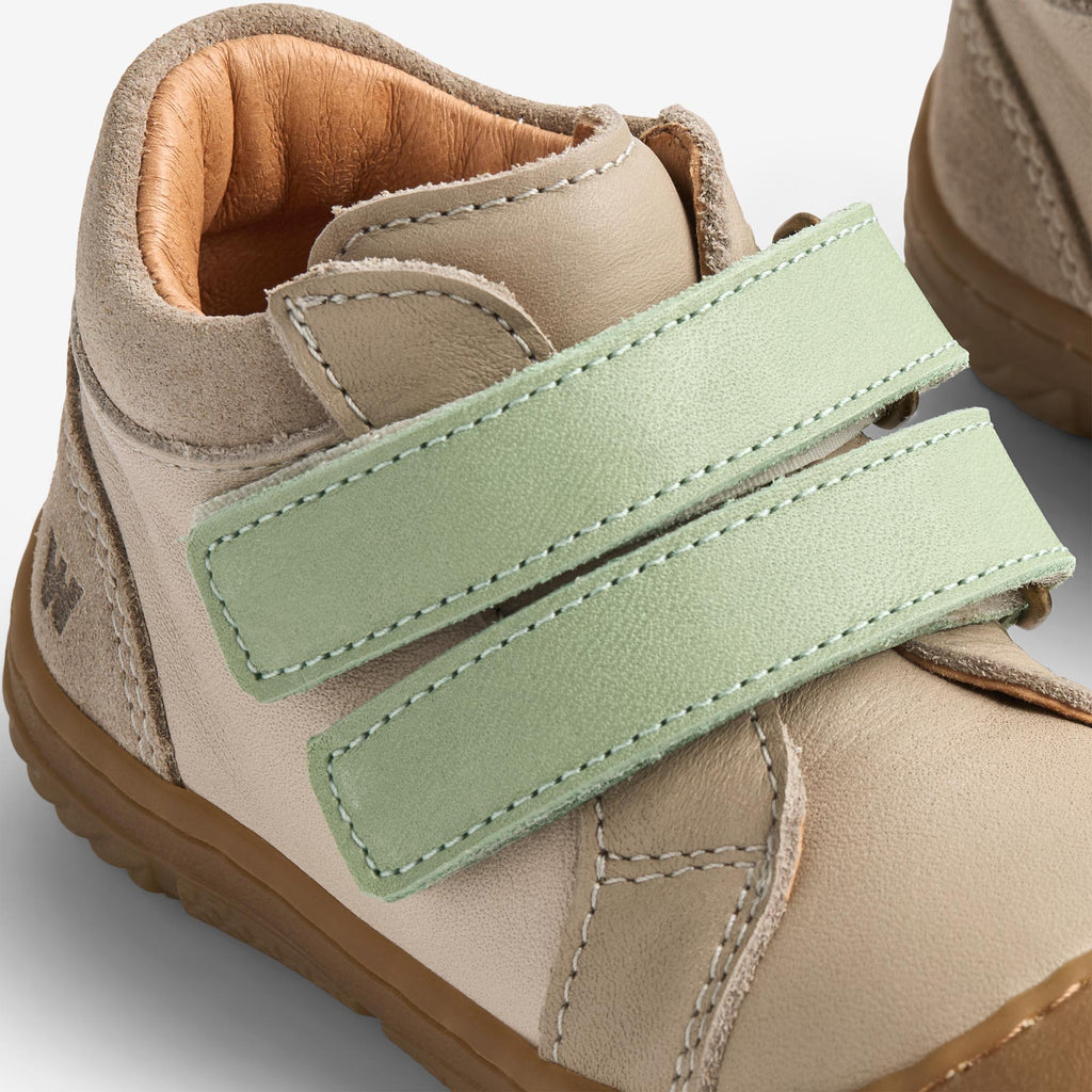 Bootie Ivalo in suede and leather provides comfort and support for your child's first steps.- Crafted from LWG Gold-rated suede - Lined with chrome-free, LWG Gold-rated leather - Rubber sole- Adjustable straps with velcro closure- Cute colour combinationThe Bootie Ivalo is designed with comfort and support in mind, perfect for little ones exploring the world. The supple suede and leather lining ensure a gentle fit, while the rubber sole provides grip and stability.The adjustable velcro straps allow for a secure and customized fit, making these booties ideal for everyday wear.