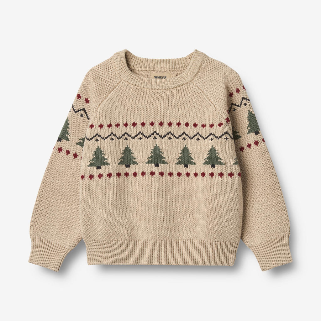 Langermet genser i myk økologisk bomull til barn. - Vanlig/løs passform- Ribb i halsen, mansjettene og nederst- Unikt strikkemønster med julemotiverWheats strikkeplagg er en sann essensiell i de stadig skiftende årstidene, siden den er myk og behagelig for barnet ditt å ha på seg uten noen form for kløe. Våre strikkede gensere har et klassisk utseende med en avslappet passform som gjør dem enkle å style med en bukse eller over en kjole avhengig av vær og anledning.