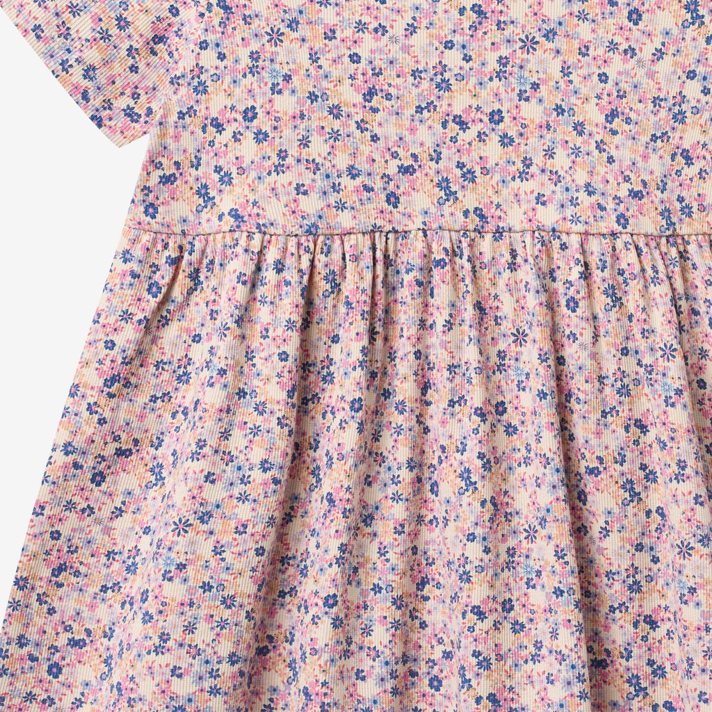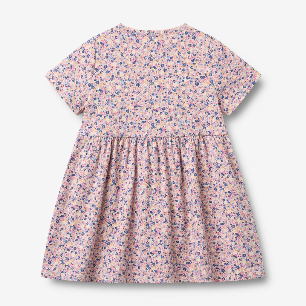 Kortermet jerseykjole med mønster i myk økologisk bomull for barn.- Løs/oversized passform- Lengde: Over knærne- Snittlinje over midjen med folder nedenfor- SignaturmønsterMyk, luftig og umiddelbart komfortabel – våre jerseykjoler er en ekte sommeressensiell. Designet for enkel bevegelse og hel dags bruk, har de en avslappet passform som gjør dem perfekte for lek, eventyr og spesielle anledninger. Enten de styles med sandaler for et luftig sommerutseende eller lagvis med leggings og en strikket genser på kjøligere dager, er denne kjolen en allsidig favoritt for ethvert lite garderobeskap.