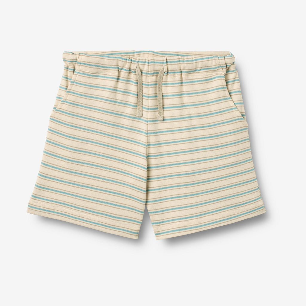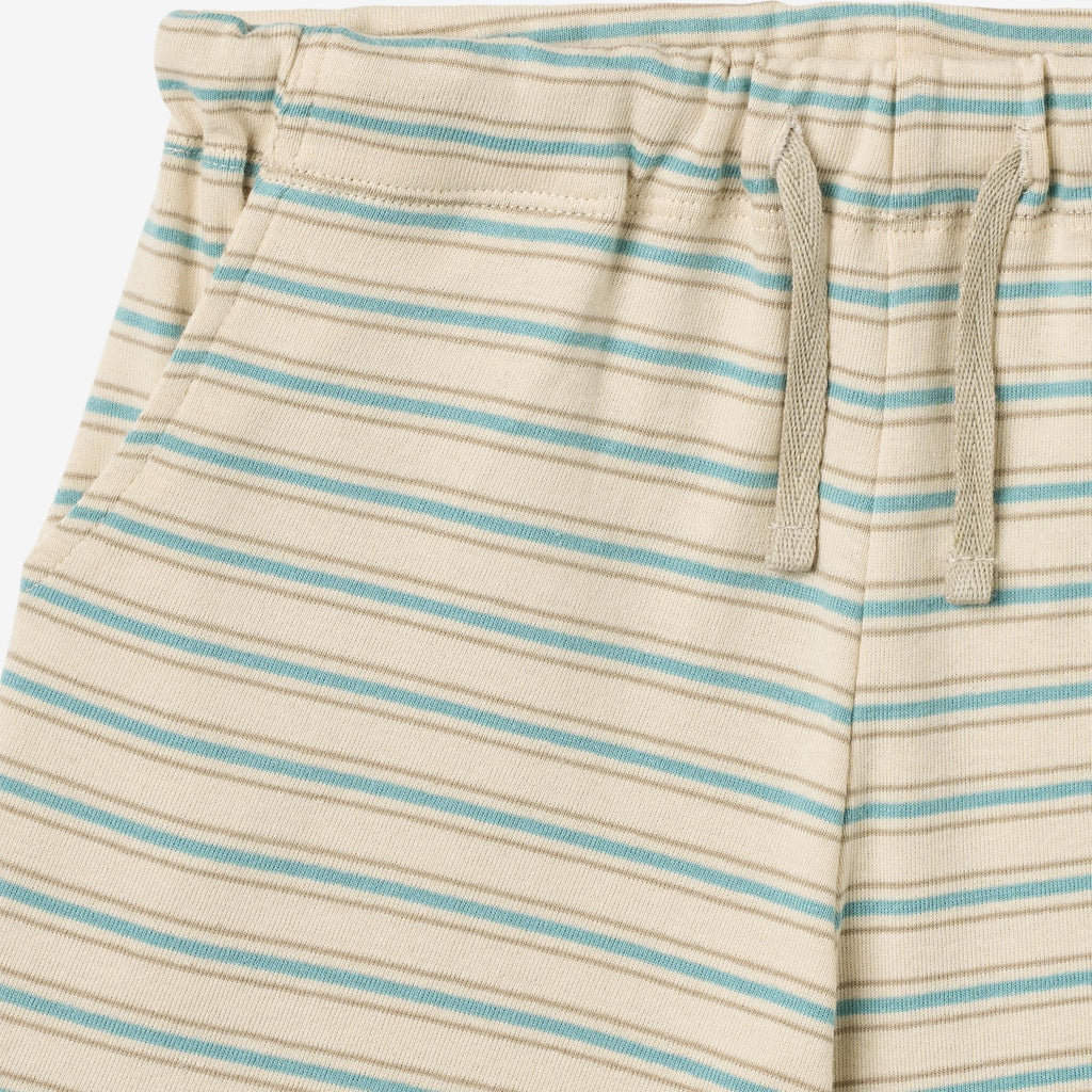 Komfortable jersey shorts med striper i myk økologisk bomull for barn. - Løs passform- Sidelommer- Lomme med lapp på baksiden- Justerbar elastikk innvendig i linningen- Snor i kontrastfarge- Avrundede benkanter- Stripete Disse myke shortsen er unisex og komfortable for barnet ditt å bruke både som hjemmetøy og til hverdagsaktiviteter. Sweatshortsen har en løs og avslappet passform rundt bena og justerbar elastikk i midjen.