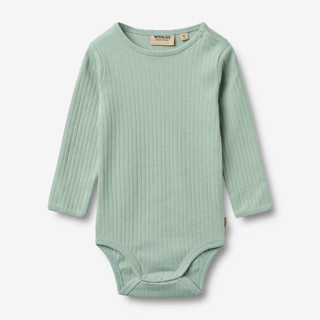 Langermet body i myk økologisk bomull for babyen din.- Normal passform- Trykknapper på venstre skulder - Trykknapper i skrittet- RibbestrukturWheats body er unisex og et ekte essensielt plagg i babyens garderobe, da det kan brukes alene eller som et ekstra lag under hverdagsklær. Bodyene har enten trykknapper på skulderen eller knapper på halsen for bedre komfort når du kler på babyen din. Bodyen har også trykknapper nederst, noe som gjør det enklere for deg å komme til babyens bleie.