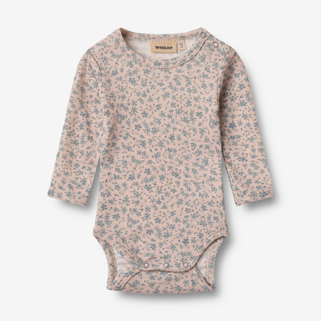 Wheats bodyer er unisex og en essensiell body i babyens garderobe da den kan brukes alene eller som et ekstra lag under hverdagsklær. Bodyene har enten trykknapper ved skulderen eller knapper i nakken for bedre komfort når du kler på babyen. Bodyen har også trykknapper nederst, som gjør det lettere for deg å få tilgang til babyens bleie.
