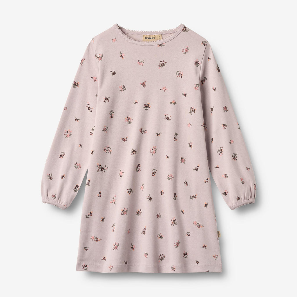 Behagelig nattkjole med trykk i myk økologisk bomull for barn. - A-formet- Liten blonde-detalj i halsen- Wheat signaturtrykkWheats søte og myke nattkjole er behagelig å ha på seg og perfekt for kalde høst- og vinternetter. Nattkjolen har en behagelig A-form og et vakkert håndtegnet trykk laget av Wheats interne designteam.