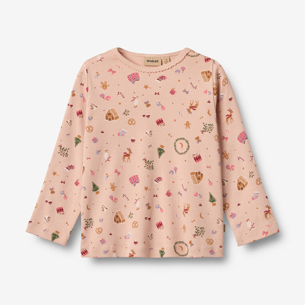 Behagelig pyjamas med juletrykk i myk økologisk bomull til barn.- Langermet T-skjorte med pikoterende detaljer i halsen- Bukser: Myk strikk i midjen - Hvete signaturtrykkWheats søte og myke nattøy er behagelig å ha på og perfekt for de kalde høst- og vinternettene. Pyjamassettet kommer med matchende T-skjorte og bukser og har et vakkert håndtegnet trykk laget av Wheats interne designteam.