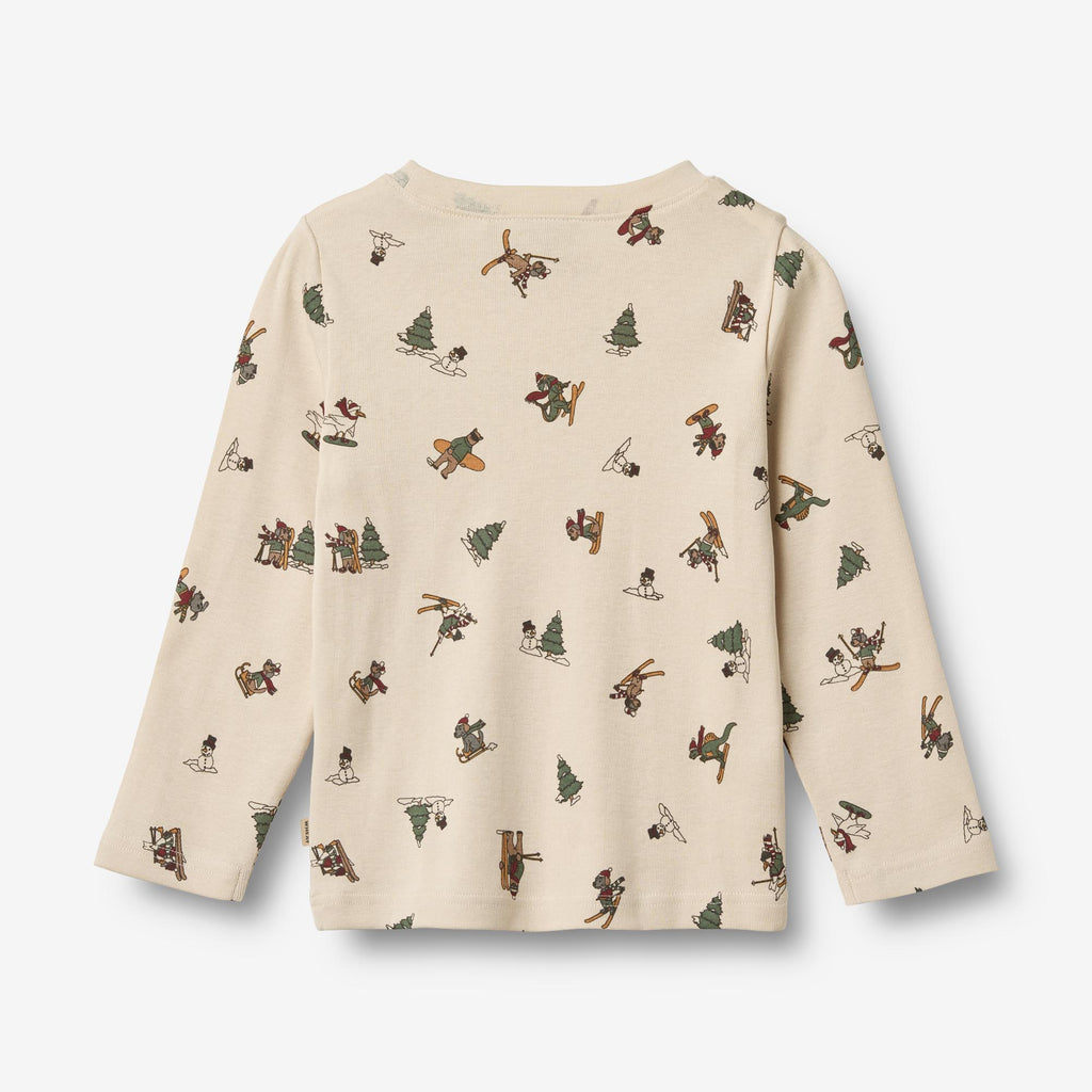 Behagelig pyjamas med trykk i myk økologisk bomull for barn. - Langermet T-skjorte med ribbet hals- Bukser: Myk strikk i midjen - Ribbemansjetter og benkanter- SignaturtrykkVårt søte og myke natttøy er behagelig å ha på og perfekt for de kalde høst- og vinternettene. Pyjamassettet kommer med matchende T-skjorte og bukser og har et vakkert håndtegnet trykk laget av Wheats interne designteam.