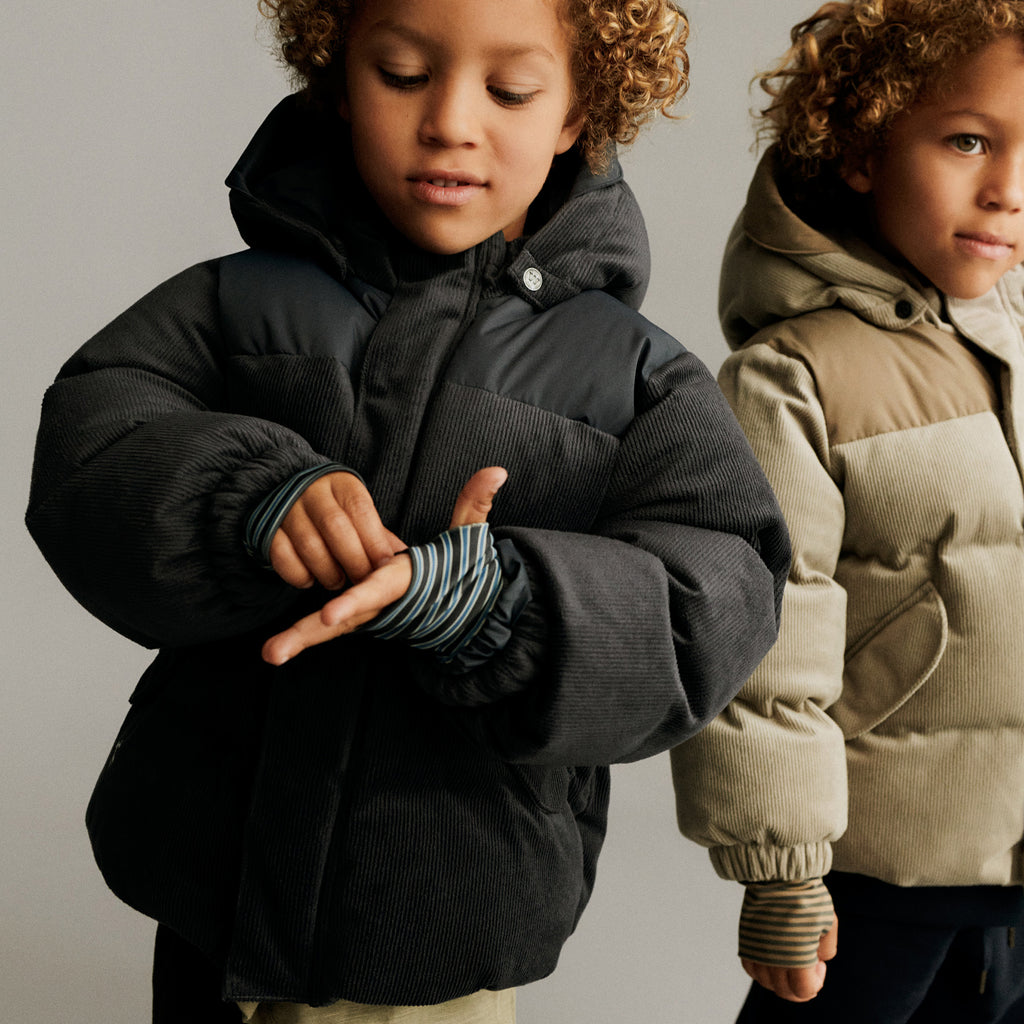 Pufferjakke i myk cordfløyel for barn. - Normal passform - Avtagbar og justerbar hette- Stormmansjetter inne i ermet med tommelhull- Løpegang med skjult glidelås foran og borrelåslukking- Skrå lommer med lommeklaffer og borrelås- Reflekterende detaljerWheat's pufferjakke med teknisk polstring er perfekt for de mange kalde høst- og vinterdagene. Den er designet med høy holdbarhet og komfort i tankene.NB. Vær oppmerksom på at pufferstilene ikke har teipede sømmer og er derfor ikke vanntette.