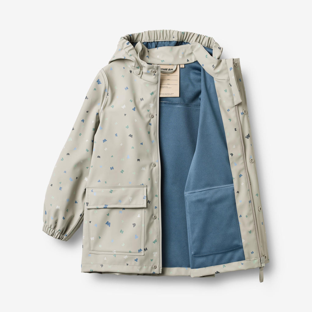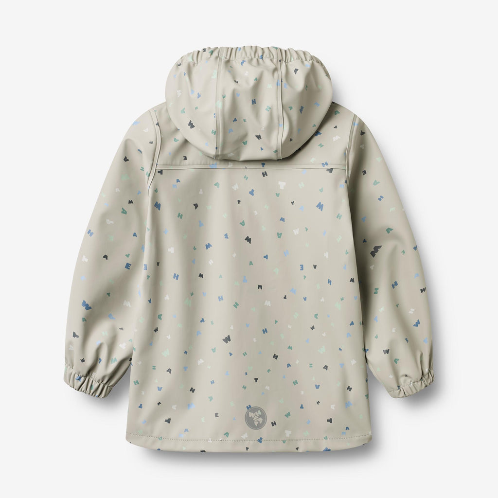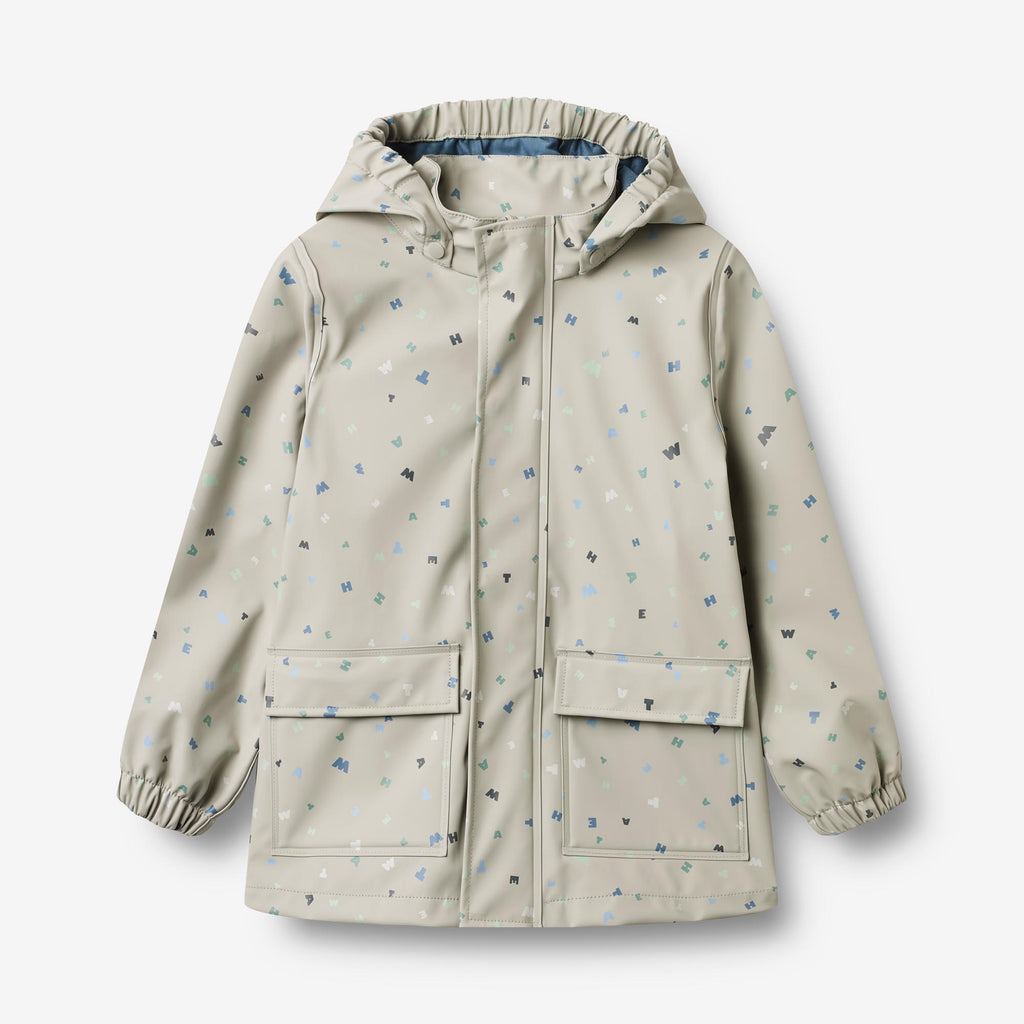 Praktisk regnjakke med trykk i vanntett og slitesterkt materiale for barn.