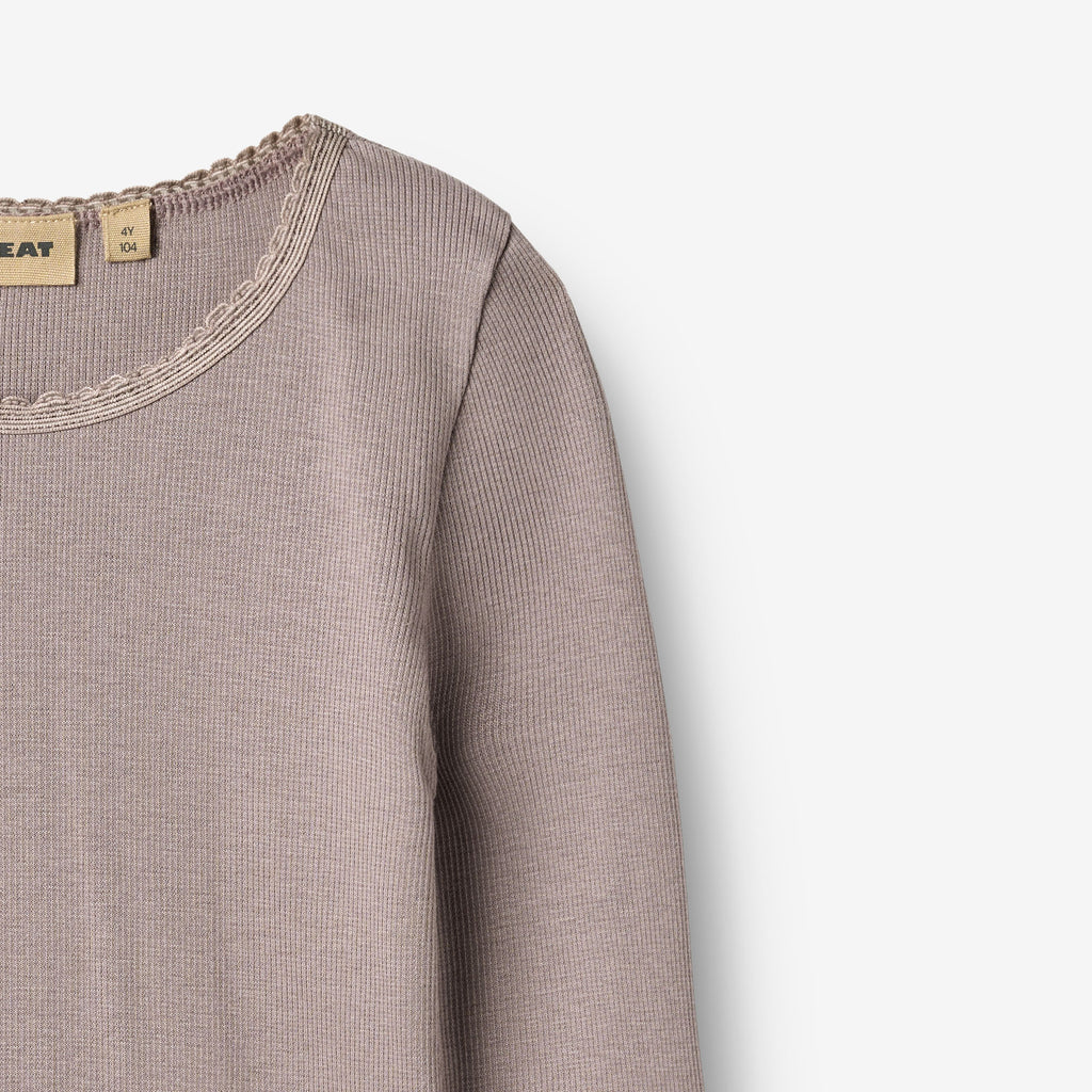 Langermet ribbestrikket T-skjorte i en myk blanding av økologisk bomull og Lenzing modal for barn.