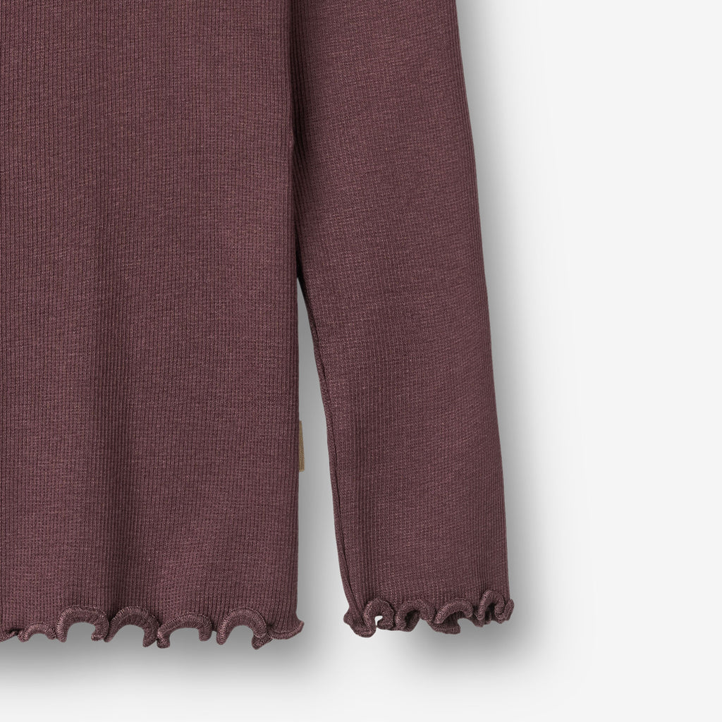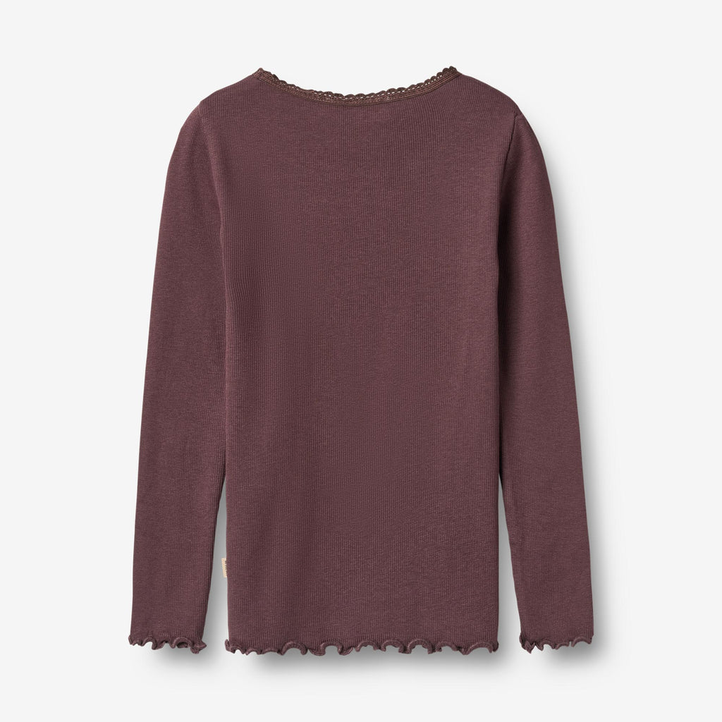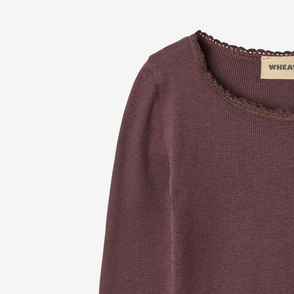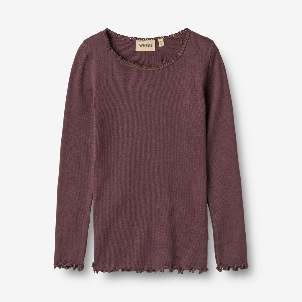 Langermet ribbestrikket T-skjorte i en myk blanding av økologisk bomull og Lenzing modal for barn.- Tettsittende og elastisk- Blonde-detaljer ved halsen- Overlocksøm ved mansjetter og nederkant- Ribbet strukturT-skjorter er et viktig plagg i garderoben til barnet ditt, da T-skjortene er myke og behagelige å ha på. T-skjortene er tilgjengelige i vakre farger og håndtegnede mønstre, som er laget av Wheat's interne designteam. De kan enkelt styles med bukser eller en skjørt, eller med en strikkegenser på toppen avhengig av vær og anledning. De er også perfekte som et ekstra lag under en kjole eller overall på kjøligere dager.