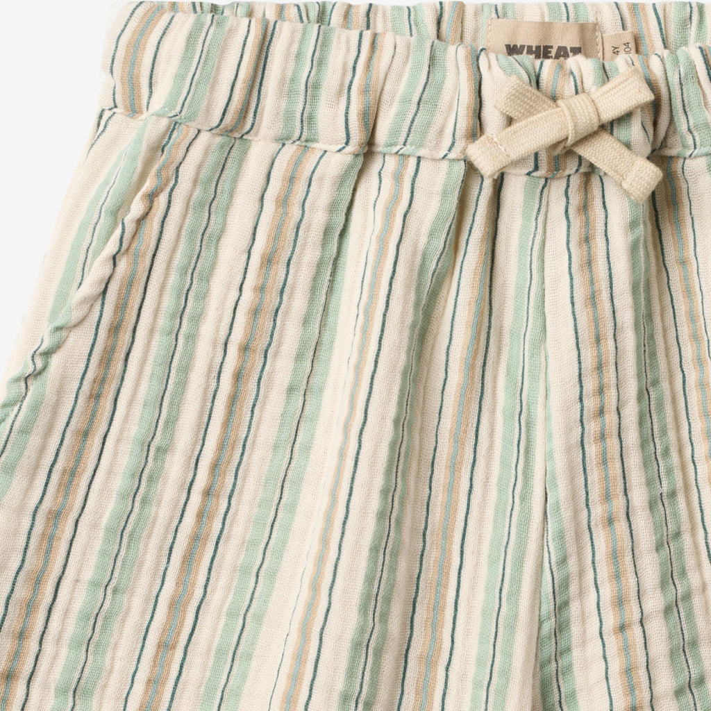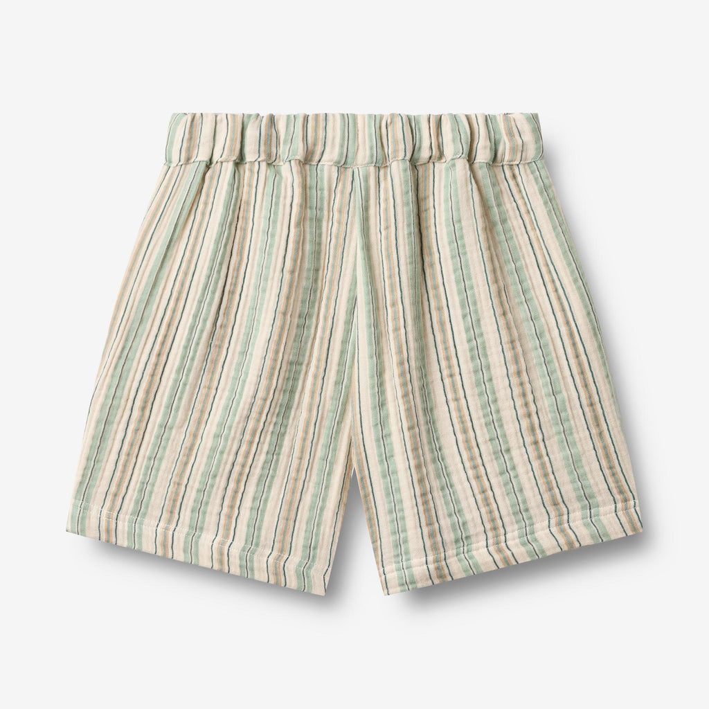 Myke shorts med striper i økologisk bomull for barn.- Vanlig/romslig passform- Sidelommer- Regulerbar elastikk inni linningen med flat lisje foran- Garnfarget vevd stripet stoffDisse myke shortsen er en essensiell del av barnets daglige antrekk med praktisk elastikk i midjen og lommer. Shortsen har en løs og avslappet passform rundt bena, noe som gjør dem behagelige for barnet å ha på seg, og de kan enkelt styles med en av våre T-skjorter, topper eller strikk for hverdagslivet.