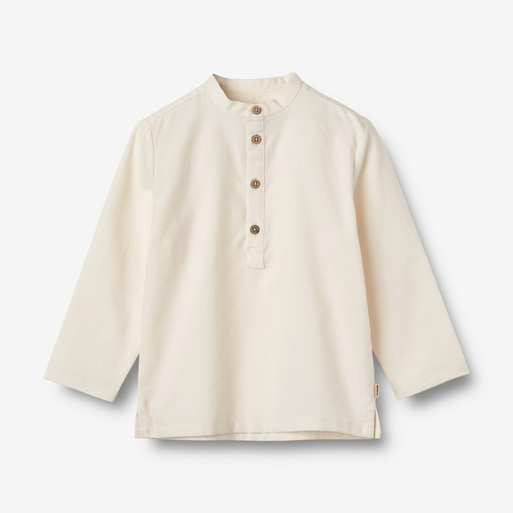 Langermet skjorte i myk økologisk bomull til barn. - Vanlig passform- Knapper halvveis ned foran- Uten krage og mansjetter for en casual lookWheats skjorter er unisex og er perfekte for de mange spesielle anledninger og koselige dager. Skjorten er behagelig å ha på med en avslappet passform og knapper foran. Skjorten gir antrekket et mer klassisk utseende og du kan enkelt style det med et par leggings eller bukser og en strikk for å fullføre looken.