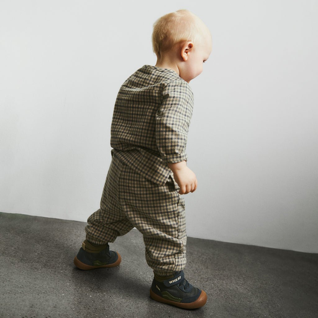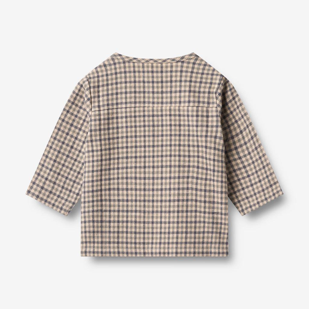 Langermet rutete skjorte i myk økologisk bomull for babyen din. - Normal passform- Mandarin krage- Knapper nedover foran- Rutet stoffWheat's skjorter er unisex og er perfekte for mange spesielle anledninger og koselige dager i løpet av høst- og vintersesongene. Skjorten gir antrekket et mer klassisk utseende, og du kan enkelt style den med et par bukser og en strikk for å fullføre looken.