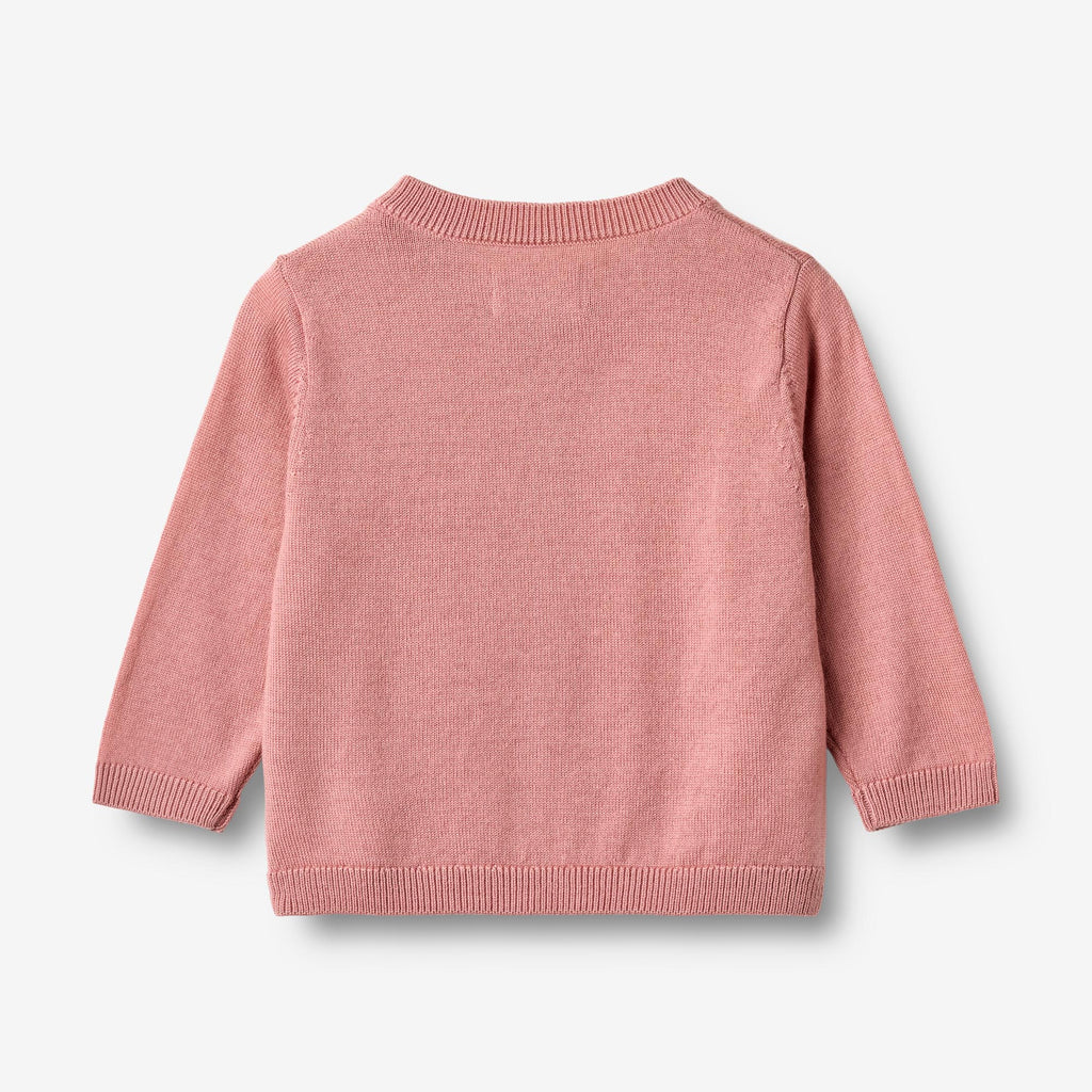 Langermet strikket cardigan i myk merinoull til babyen din. - Normal passform- Knapper nedover foran- Ribbestrikk i halsen og kanteneWheats strikkeplagg er virkelig essensielt i løpet av de kalde høst- og vintermånedene, da det er mykt og behagelig for babyen din å ha på uten noe form for kløe. Våre strikkede plagg har et klassisk utseende med en avslappet passform som gjør det enkelt å style med et par bukser eller over en kjole, avhengig av været og anledningen.