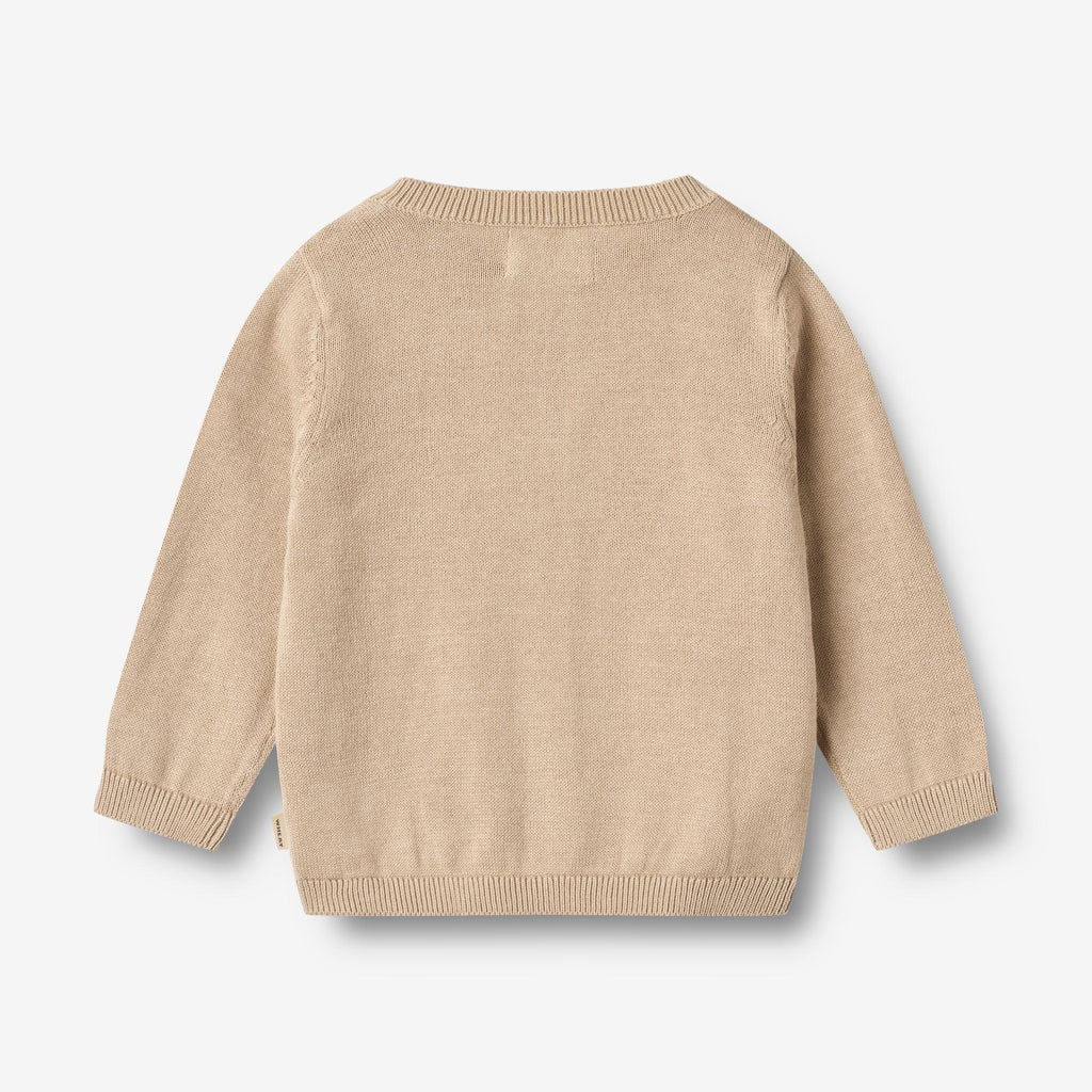 Langermet strikkejakke i myk økologisk bomull for babyer.- Ribbestrikk i halsen og kantene- Knapper foran- Purl-strikkdetaljer som striper på brystetWheats strikkeplagg er en ekte nødvendighet i de stadig skiftende sesongene, da det er mykt og behagelig for babyen din å ha på seg uten noen form for kløe. Strikketøyet vårt har et klassisk utseende med en avslappet passform som gjør det enkelt å style med hvilket som helst antrekk.