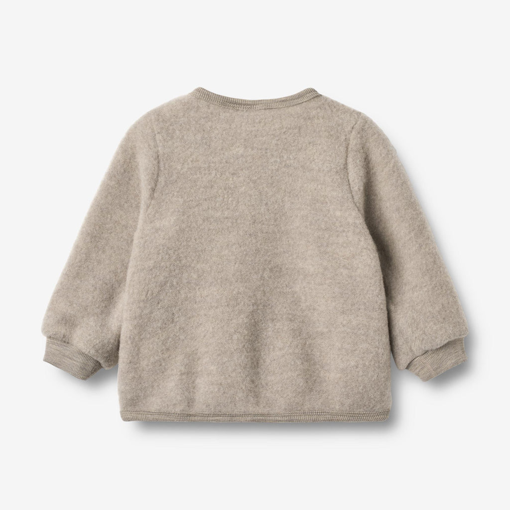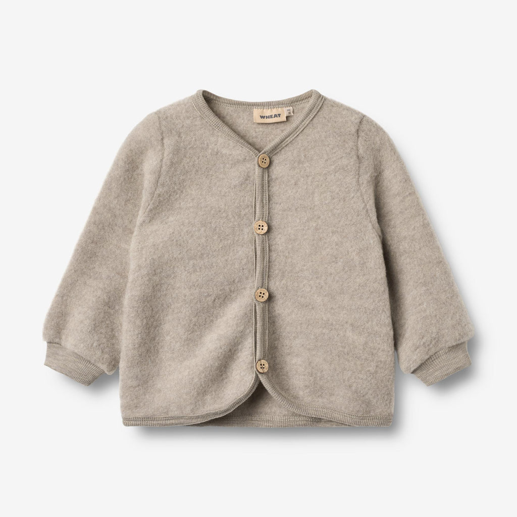 Langermet ullcardigan i tovet merinoull til babyen din.- Vanlig passform- Knapper foran- Ribbemansjetter- Mykt kantbånd i halsen og nederstWheats ullklær er spesialdesignet for å holde barnet ditt varmt i det kalde været, samtidig som det ikke blir overopphetet, siden ull har den unike kvaliteten at den hjelper til med å regulere kroppstemperaturen. Ullstilene er flotte for lagdeling og myke på bar hud.Wheats cardigans har et klassisk utseende med knapper foran. Den myke cardiganen er behagelig å ha på og et flott tillegg til ditt barns høst- og vintergarderobe. Den kan styles alene som en lett jakke med T-skjorte under og gir antrekket et søtt utseende. Den er også perfekt som et ekstra lag under en jakke.