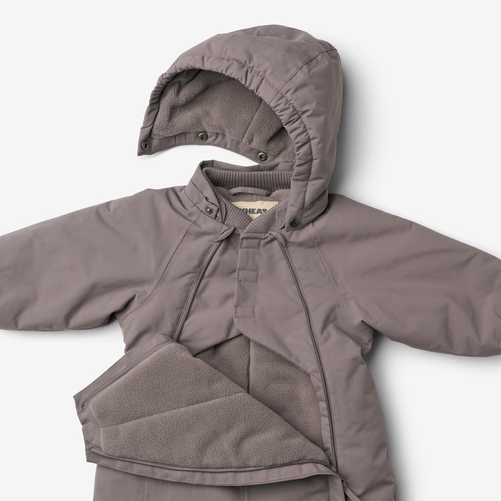 Praktisk snødress i pustende og vanntett stoff for babyen din. - Regulær passform- Foret med mykt fleece- Skjult dobbel glidelås foran- Avtagbar og justerbar hette- Ribbestrikket krage- Elastisk detalj bak for god passform- Justerbar gummistropp under føttene- Elastiske mansjetter og benavslutninger- ReflektorerWheats tekniske snødrakter er pustende, holdbare og vind- og vanntette for å sikre at barnet ditt holder seg varmt og tørt i regn- og kaldt vær. De er også skittavvisende og derfor lette å rengjøre. Drakten er ment som yttertøy om vinteren, da den er foret med mykt fleece som gjør den behagelig for barnet ditt å ha på seg. Den har mange praktiske detaljer, som en avtagbar og justerbar hette og en ribbestrikket krage som gjør den behagelig for barnet ditt å ha på seg. Drakten kan åpnes helt, slik at det er enkelt for barnet ditt å ta den på seg.
